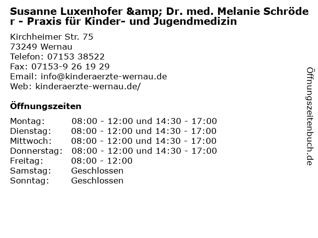 Dr. Rothmund Wernau - á Offnungszeiten Vera Rolf Facharztin Fur Kinder Und Jugendmedizin Kirchheimer Str 75 In Wernau - 75 73249 wernau (neckar) tel.: